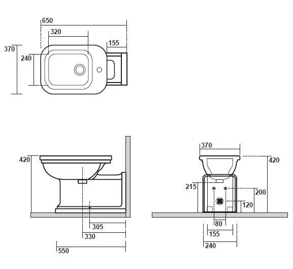 Біде підлогове подовжене Kerasan Waldorf чаша прямокутна