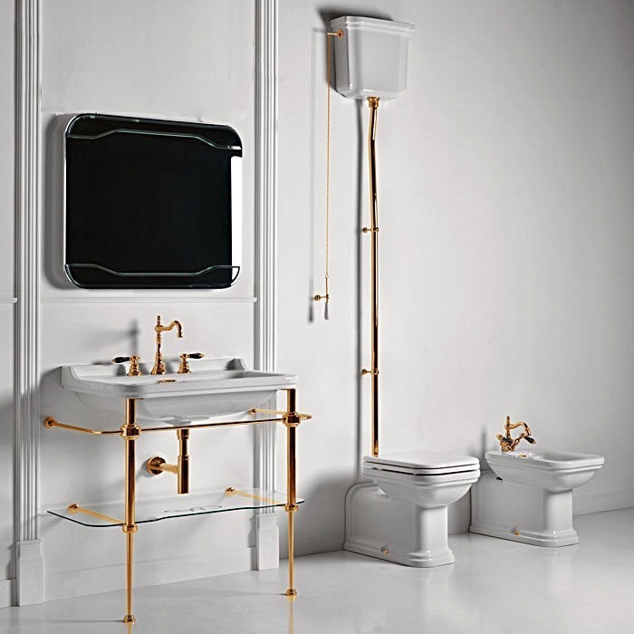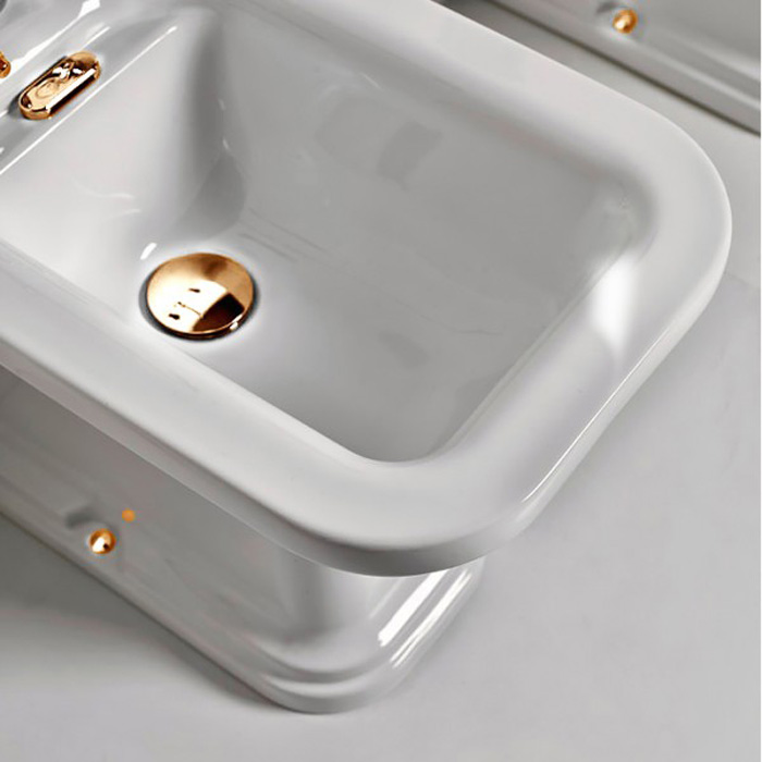 Біде підлогове подовжене Kerasan Waldorf чаша прямокутна білий / золото 4120K2