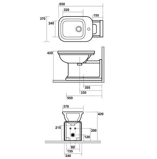 Біде підлогове подовжене Kerasan Waldorf чаша прямокутна