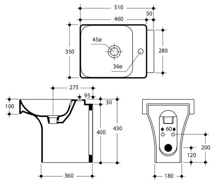 Біде підлогове приставне Kerasan Cento прямокутне біле 352101