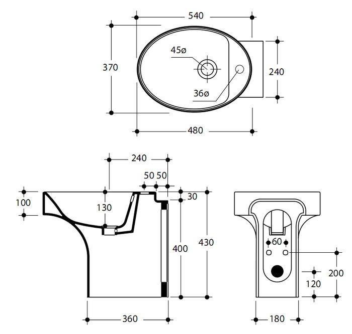 Біде підлогове приставне Kerasan Cento з одним отвором біле 352001