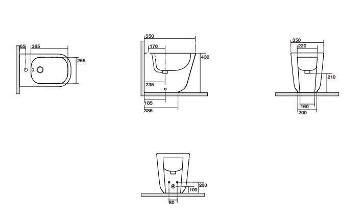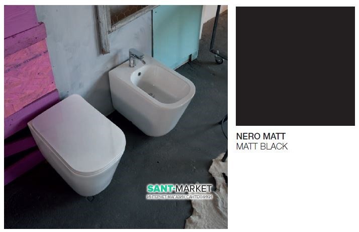 1) Біде підлогове Kerasan Tribeca з кріпленням WB5N чорний матовий