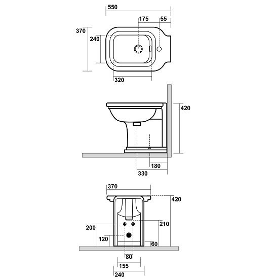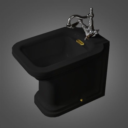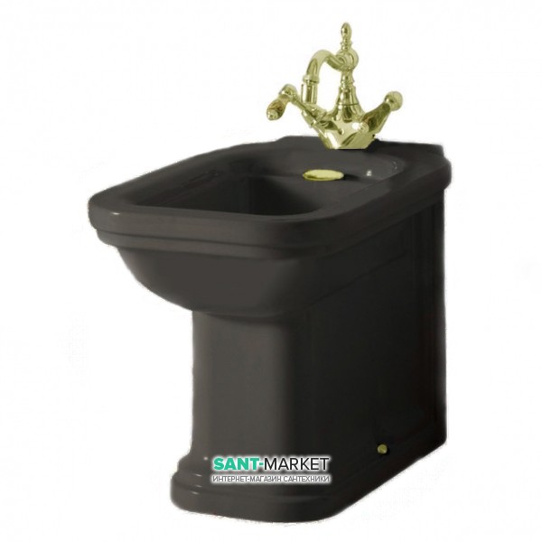 Біде підлогове приставне Kerasan Waldorf з одним отвором чорний глянсовий золото 4121K5