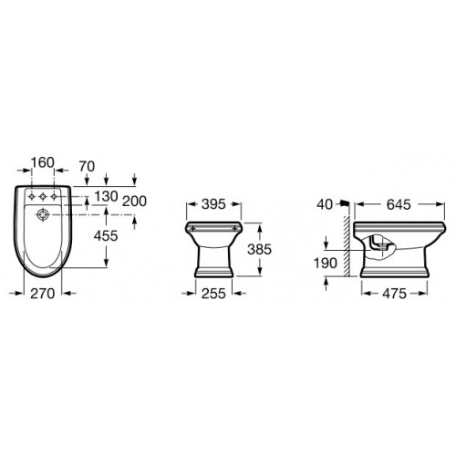 1) Біде підлогове Roca America 39.5х64.5 см кераміка білий