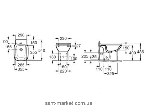 Біде підлогове Roca колекція Debba 54х36х44 з переливом A355994000