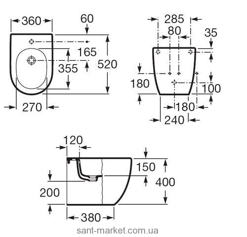 Біде підлогове Roca колекція Meridian-N Compacto 52х36х40 з переливом A357247000