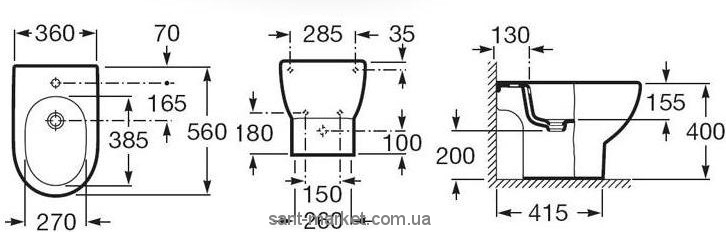 Біде підлогове Roca колекція Meridian-N 56х36х40 з переливом A357244000