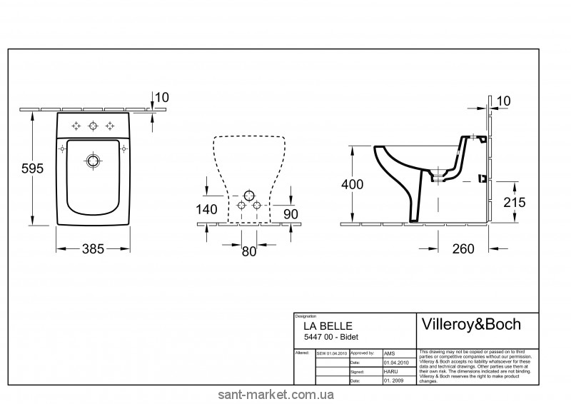 Біде підлогове Villeroy & Boch колекція La Belle 60х39х40 з переливом 544700R1