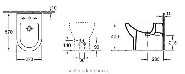 Біде підлогове Villeroy & Boch колекція Subway 56х37х40 з переливом 741000R2