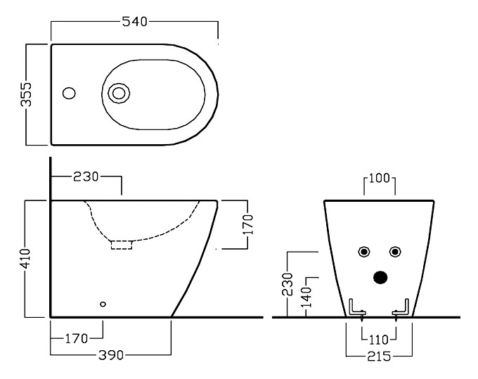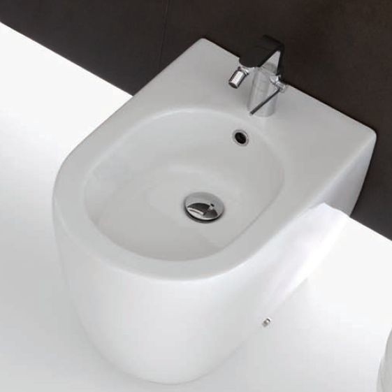 Біде підлогове HATRIA FUSION з одним готовим отвором під змішувач, з отвором переливу. У комплекті з кріпленням.