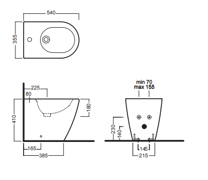Біде підлогове HATRIA FUSION з одним готовим отвором під змішувач, з отвором переливу. У комплекті з кріпленням.