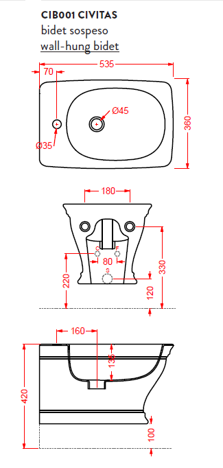 Біде підвісне ArtCeram Civitas 36х53,5 см санфарфор білий глянсовий CIB001 01; 00