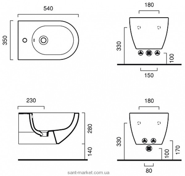 Біде підвісне Catalano колекція Sfera 54х35х42 з переливом BSS54