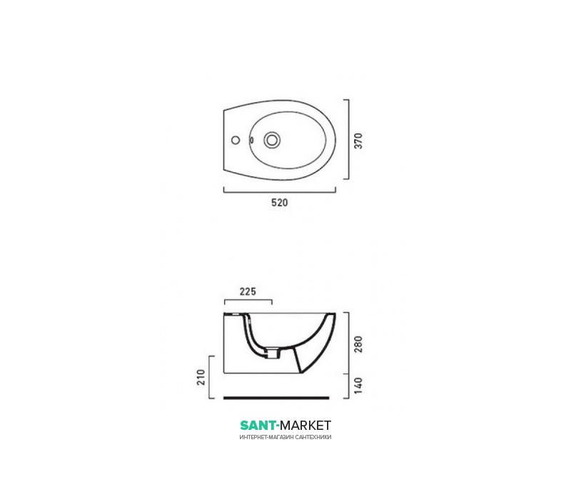 Біде підвісне Catalano NEW LIGHT 37х52 см 1 відп. під змішувач біле 1BSLI00