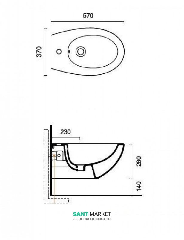 Біде підвісне Catalano VELIS 1 відп. під змішувач біле 37х57 см 1BSVL00