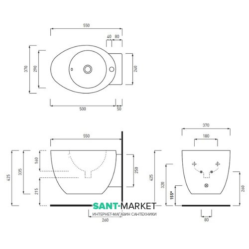 Біде підвісне Cielo Le Giare 37x55x33.5 см 1 відп. під змішувач біле матове LGBS / TL
