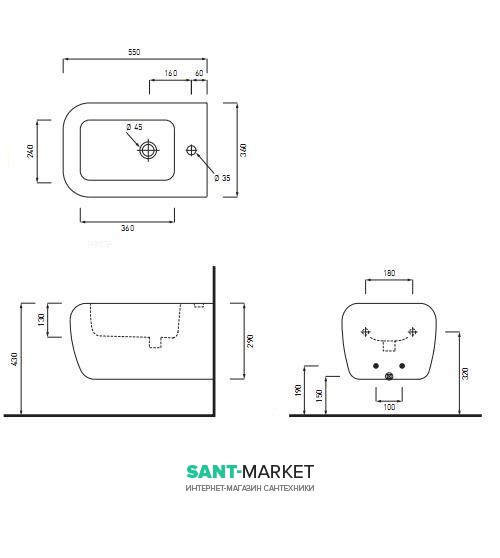 Біде підвісне Cielo Shui 36x55x29 см 1 відп. під змішувач біле SHBSB