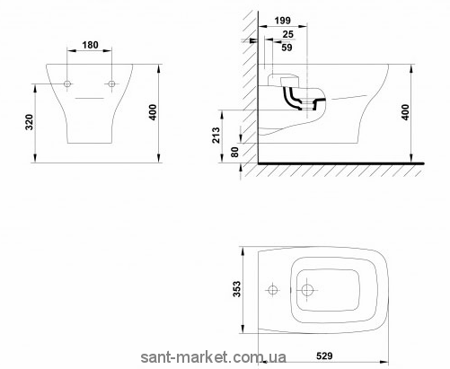 Біде підвісне Gala колекція Street Square 53х35х40 з переливом G7058601 (05362)
