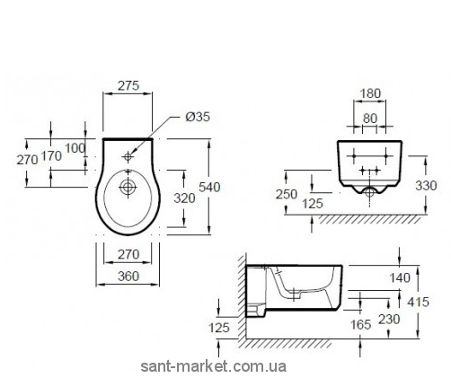 Біде підвісне Jacob Delafon колекція FORMILIA VIRAGIO 54х36х42 E4774-00