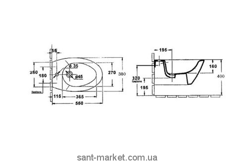 Біде підвісне Jacob Delafon колекція PRESQU'ILE 55х38х40 з переливом Е1350-00