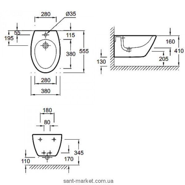 Біде підвісне Jacob Delafon колекція PRESQU'ILE 55х38х35 з переливом E4441-00