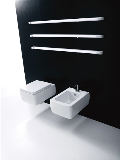 Лінія "Ego" від дизайнера Сімоне Анзелліні - це прямокутні форми з м'яко закругленими кутами. У Ego гармонійно зливаються сучасність і класика, перетворюючись в новий, універсальний стиль. Широкий розмірний ряд включає в себе навіть самі компактні з можливих величин: так, нові унітази і біде Ego мають глибину всього 46 см, - це є незаперечною перевагою в рішеннінайсміливіших архітектурних завдань.