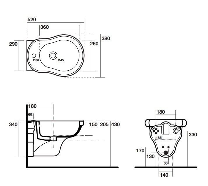 - Біде підлогове, розмір 380х340х520 мм