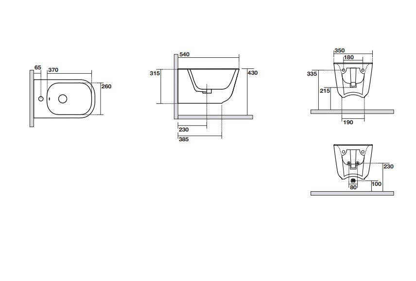 - Біде підлогове, розмір 350х330х540 мм