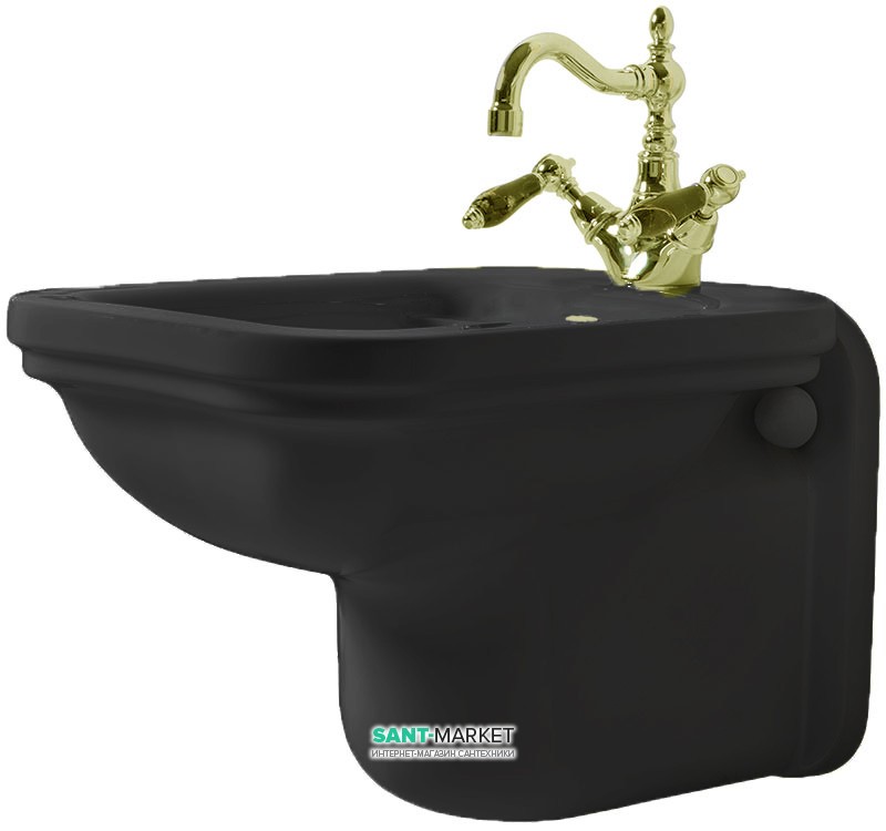 Біде підвісне Kerasan Waldorf з одним отвором чорний глянсовий золото 4125K5
