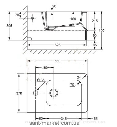 Біде підвісне Kludi колекція Esprit 56х37х40 з переливом 56BIW43