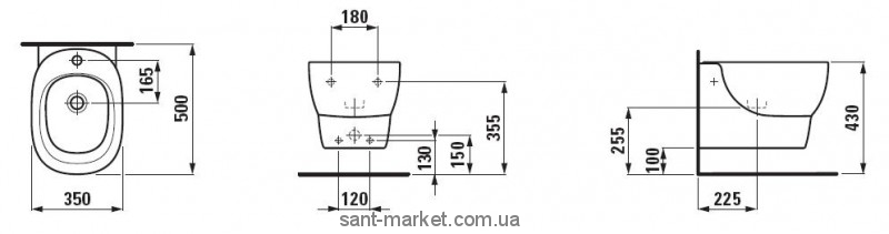 Біде підвісне Laufen колекція Mimo 50х35х43 з переливом H8305510003021