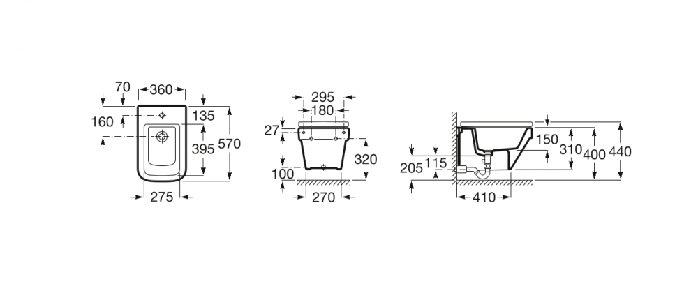 1 ) Біде підвісне Roca Dama-N 36х57 см кераміка білий