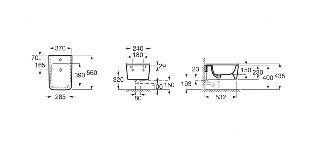 Біде підвісне Roca Inspira Square 56х37 см 1 отвір під змішувач кераміка колір білий A357535000