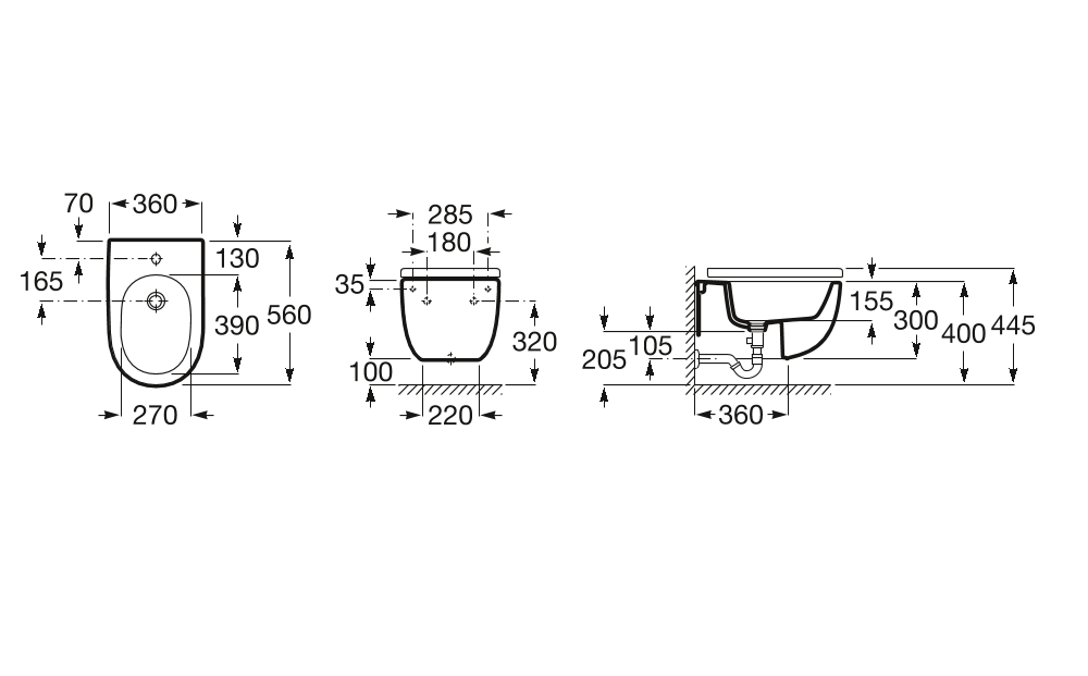 Біде підвісне Roca Meridian 36х56 см кераміка білий A357248000