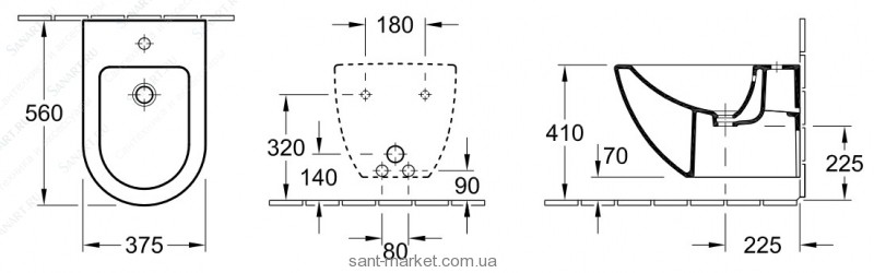 Біде підвісне Villeroy & Boch колекція Subway 56х37х41 з переливом 740000R1