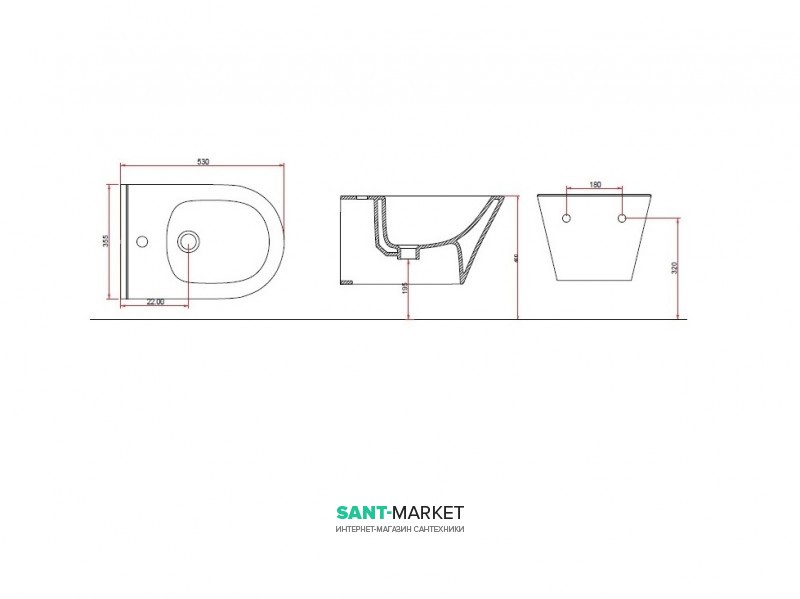 Біде підвісне Volle Altea колекція Amadeus 53х35.5х40 біла 13-64-208