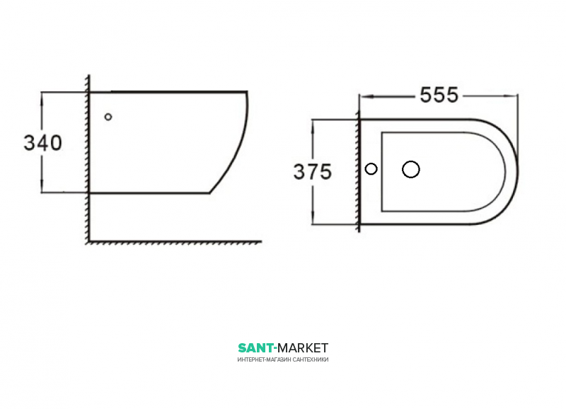 Біде підвісне Volle колекція Amadeus 55.5х37.5х34 з переливом 13-06-256