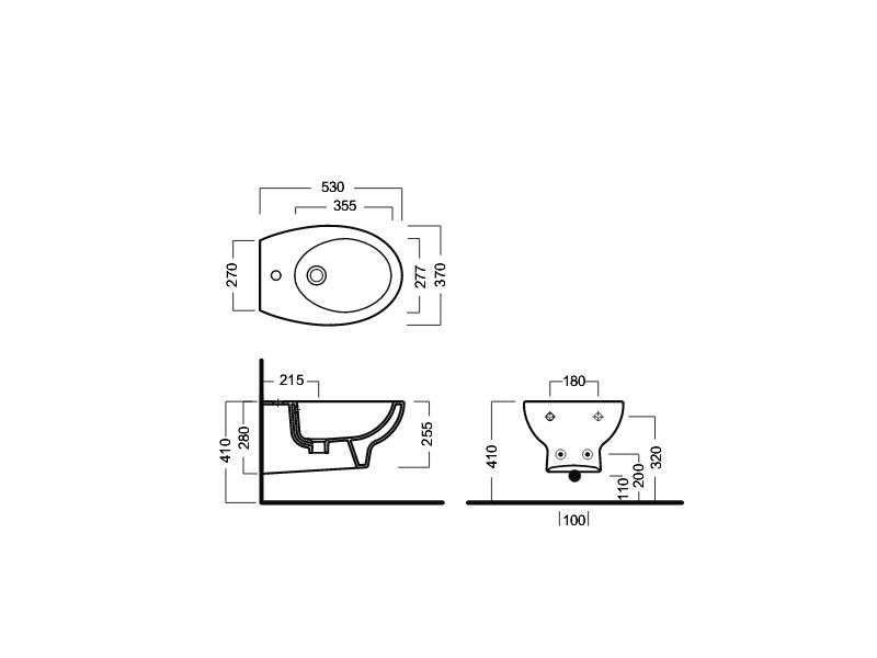 1) Біде підвісне з одним отвором Hatria Erika Pro