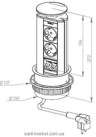 2 електричні розетки, 2 роз'єми RJ45 для підключення комп'ютера та телефону, підсвічування від 6-ти блакитних світлодіодів, кнопка вимкнення підсвічування зі світлодіодним індикатором,