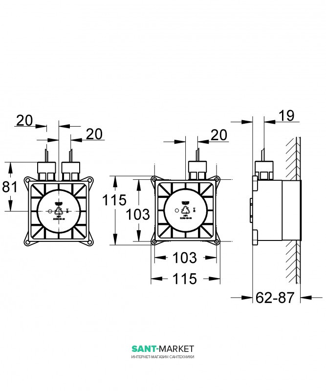 - 2 вбудовані блоки (115×115×62-87 мм)