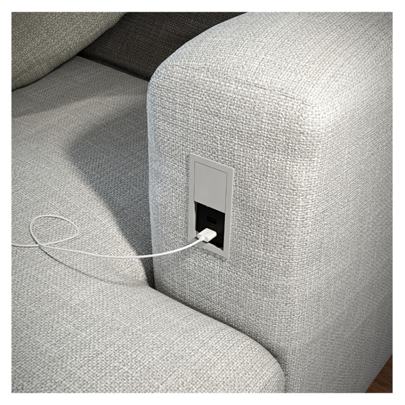 побудований - в меблевій розетці Asa plistici versahit mono - компактне, безпечне та функціональне рішення для прихованого джерела живлення та з'єднувальних пристроїв.