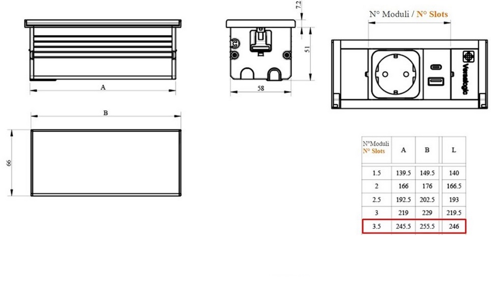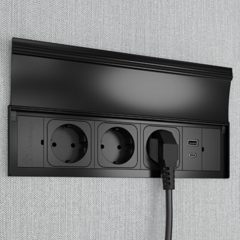 Блок розеток ASA Plastici Versalid 3х220В+USB А+С чорний 060.39F.00011
