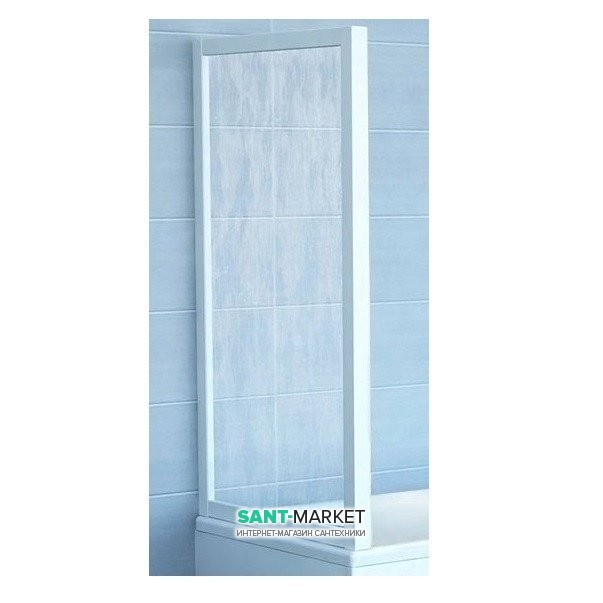 Бічна стінка для ванної Ravak APSV-75 білий профіль, вітраж з полістиролу rain