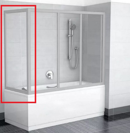 Нерухома частина, яка не використовується самостійно, а лише в комбінації з дверима для ванни AVDP3. Дозволяє створити ідеально герметичне подушне простір навколо ванни.