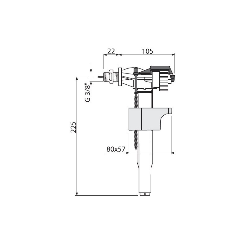 Bпускной механізм AlcaPlast для пластикових бачків з бічним підведенням A16P-3/8 "