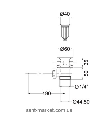Представлений донний клапан включає в себе зовнішню і внутрішню частини. Внутрішня частина представлена у вигляді циліндричної втулки, з лійчастого розширенням зверху діаметром 6 сантиметрів. У ній розташовується зливна пробка витягнутої циліндричної форми з круглою кришечкою. Зовнішня частина включає в себе порожній циліндр, також з розширенням у вигляді воронки у верхній частині, куди, крізь донний отвір ванни і з використанням ущільнюючих елементів, вставляється внутрішня частина клапана. У його нижній частині розташований вихід на сифон з різьбленням формату 5/4 "(1 1/4"), а збоку - циліндричний вихід для стержня тяги і сам стрижень довжиною 19 см, яким можна керувати зливна пробка (за допомогою ручки, що входить в комплект зливу-переливу, або за допомогою штока).