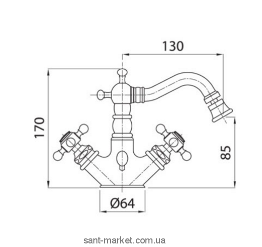 Двохвентильний змішувач для біде виробництва компанії Bugnatese. Цей виріб підійде для обладнання туалетних приміщень в класичному стилі, включаючи такі його різновиди, як ретро і ампір. Також він може бути доречним і в інтер'єрах в стилі арт-деко.