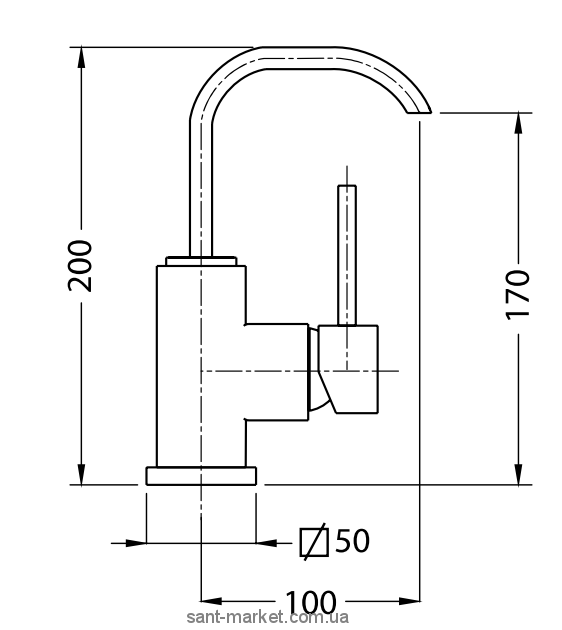 анний змішувач має надійну конструкцію з геометрично правильними обрисами. У верхній її частині розташований плоский кран загальною довжиною 10 см, виконаний у формі літери «Г» з округлими кутами. Ближче до носика кран плавно загинається вниз під кутом 45 градусів, і злегка скошений щодо площині біде. Також ця модель не передбачає наявності рухомого наконечника, що досить незвично для цього різновиду санітарно-гігієнічних приладів. Підстава крана за допомогою невеликого дисковидного кріплення приєднано до витягнутому прямокутному п'єдесталу квадратного перетину зі стороною ок. 5 см. Загальна висота змішувача (від стільниці до крана) становить 20 сантиметрів. У середній частині цього своєрідного п'єдесталу вправо відгалужується короткий циліндричний елемент, який закінчується характерною для колекції INSIDE трапецієподібної ручкою квадратного перетину для регулювання подачі гарячої та холодної води. Ця ручка також забезпечена довгим плоским важелем, направленим верх, площиною до крану.