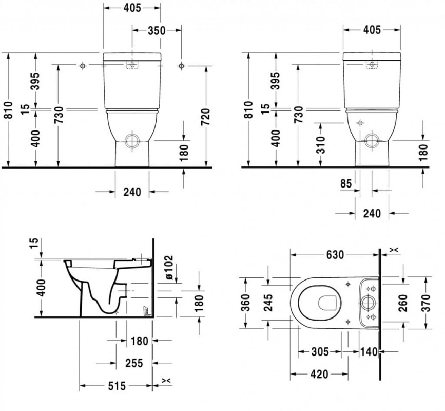 1) Чаша унітазу-компакта Duravit Darling New 37х63 см кераміка білий