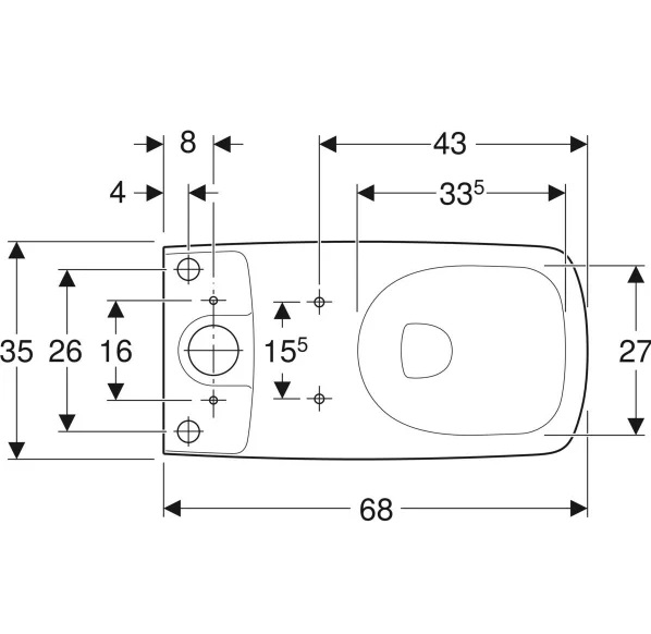 1) Чаша унітазу-компакта підлогового Geberit Selnova Square Rimfree 35х68 см фарфор білий